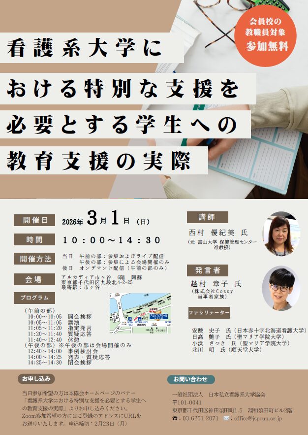 特別な支援を要する発達障害傾向の看護学生の特徴や具体的な教育支援の実際を学び、